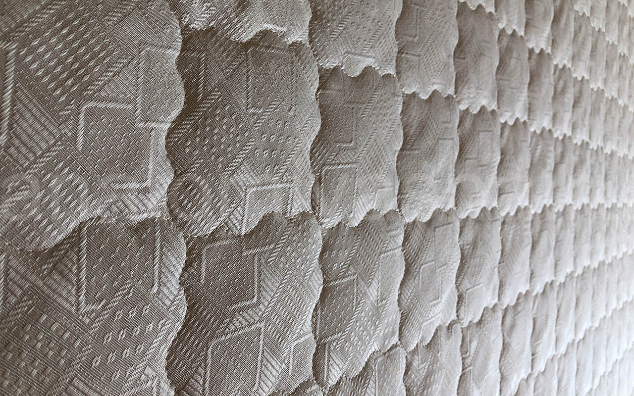 Верхнее покрытие матраса хлопковый жаккард - высокопрочная натуральная ткань, состоящая из хлопчатобумажного волокна с особым способом переплетения волокон. Хлопковый жаккард может быть двойным (дублированным) или недублированным. Как правило, дублированный жаккард используют в качестве верхнего покрытия для матрасов, чехлов и наматрасников. Особенность материала заключается в том, что рисунок, получаемый в результате переплетения нитей волокна, одинаковый с лицевой и изнаночной стороны. Самой важной характеристикой ткани является его экологичность и износостойкость.