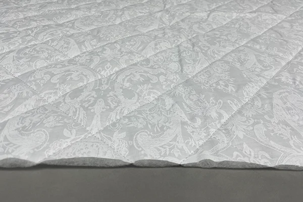 Верхнее покрытие наматрасника хлопковый жаккард с системой комфортности - высокопрочная натуральная ткань, состоящая из хлопчатобумажного волокна с особым способом переплетения волокон. Хлопковый жаккард может быть двойным (дублированным) или недублированным. Как правило, дублированный жаккард используют в качестве верхнего покрытия для матрасов, чехлов и наматрасников. Особенность материала заключается в том, что рисунок, получаемый в результате переплетения нитей волокна, одинаковый с лицевой и изнаночной стороны. Самой важной характеристикой ткани является его экологичность и износостойкость.